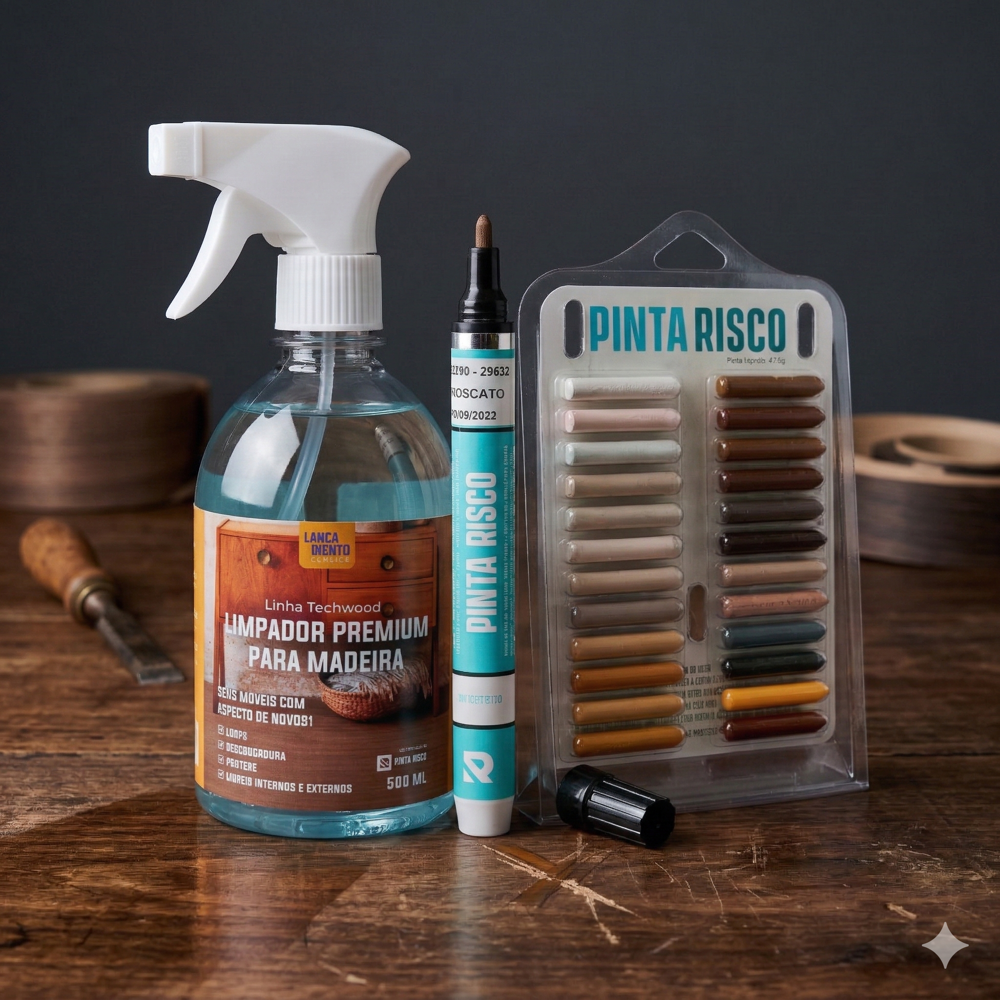 O Kit Reparador de Madeira Completo Pinta Risco reúne três soluções essenciais para cuidar de móveis e superfícies de madeira de forma prática e eficiente.